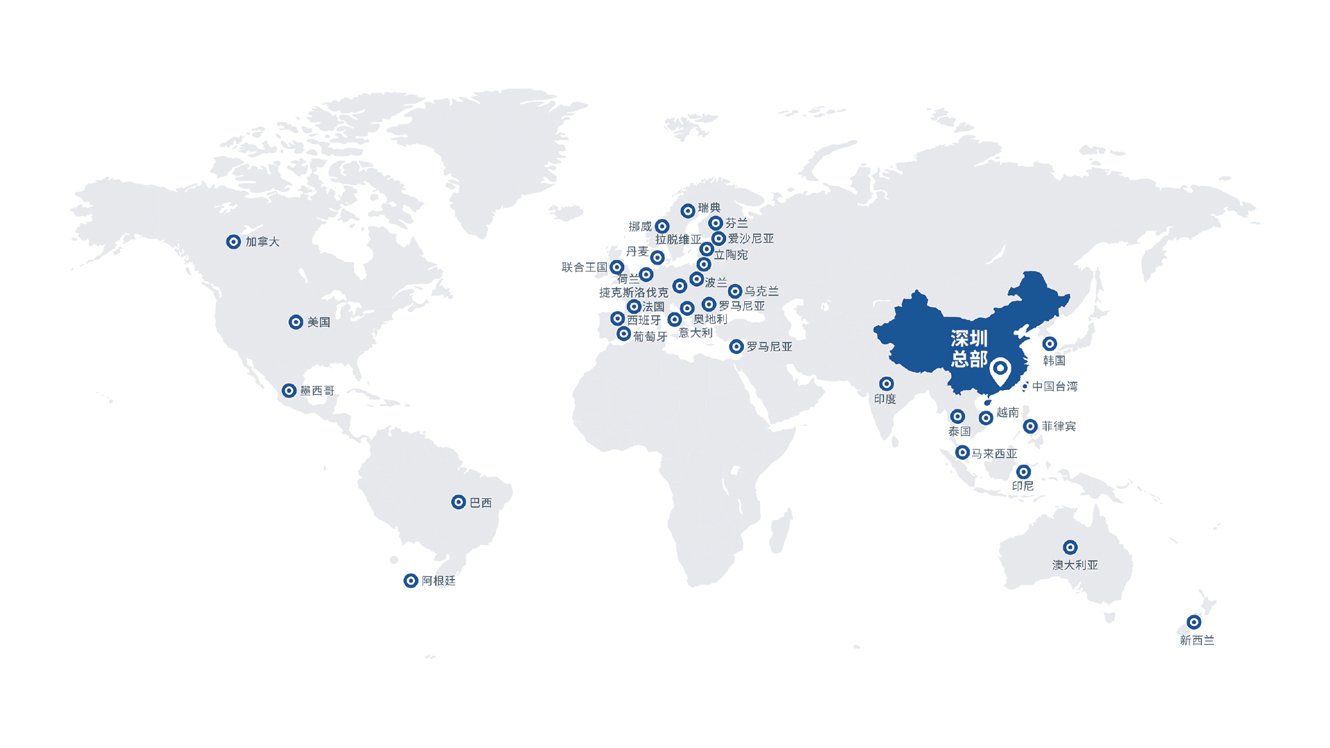 立足于國內(nèi)深圳、張家港、常州、天津、長沙、蘇州、濟(jì)南生產(chǎn)基地與備品備件庫,國內(nèi)外轄180+辦事處,在100多個(gè)國家和地區(qū)設(shè)立銷售服務(wù)機(jī)構(gòu),為全球用戶提供高品質(zhì)的產(chǎn)品與優(yōu)質(zhì)高效的服務(wù)。